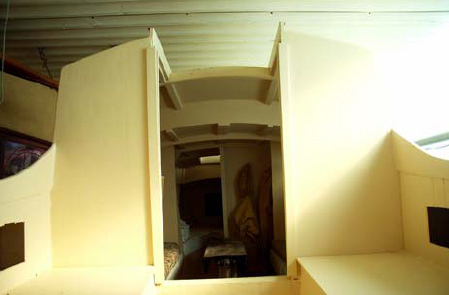 The coach roof is laminated from three layers of 3mm, the sides built up by strip planking. The internal accommodation looked quite good considering the relatively short length. A nameboard lying on the trailer said "Tadpole". I think it would suit better than the original.