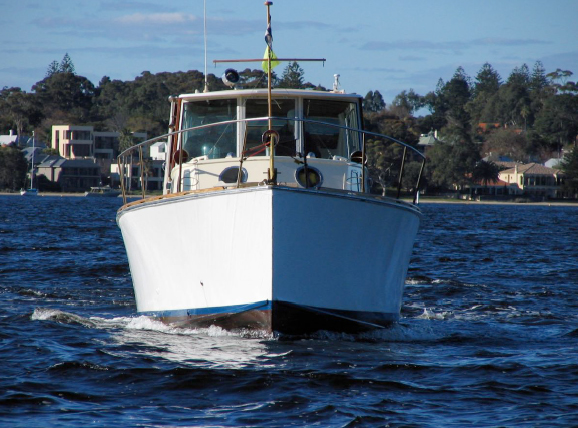 Built in 1943 Karrawa began life as 08-41. She was one of 147 38' launches built by the Sydney boatbuilder, Lars Halvorsen, as part of a wartime contract for the Department of Munitions. Forty three of these 08s were constructed for the RAAF. Karrawa served the nation as RAAF crash boat 08-41, a speedy coastal rescue craft and seaplane tender. She was stationed at Point Cook in Victoria, then Rathmines on Lake Macquarie and lastly at RAAF Station Richmond in NSW. Originally she had twin Chrysler Royal straight 8 petrol engines and was capable of travelling at 28 knots. She has a double diagonal oregon plank planing hull. Tomlinson added the present superstructure to Karrawa and had her fitted out by Len Back at North Fremantle. The forward cabin, with its two bunks and head, is original, but the wardrobe and drawers were added as was the seating in the new wheelhouse. She was kept in the middle boatshed below RFBYC in Freshwater Bay until the early 1980s. For many years Karrawa was the fastest private boat on the river, holding the speed record between Fremantle and Rottnest until 1974 when her petrol engines were replaced by two 115 hp Perkins diesels. Following Tomlinson, she has had seven owners in Western Australia; Bob Angell (1961-70), John Stewart (1970-83), John Kruiskamp and Gordon Traill (1983), DD Brown (1984), Barry Newton (1984-88), Ralph Brockman and Colin Wright (1988-93), Ross and Jenny Gregory (1993-2009), and the present owners Robert Bingham and Ashley Wilson (2009-). Since February 2010 she has been on a hardstand at Maylands Amateur Boatbuilding yard under going repair and refurbishment. Current repairs include replacement of the forward 2/3 of the hull above the chine on the starboard side, assorted frames, replacement of the transom, general repairs to rotten timber and painting. |